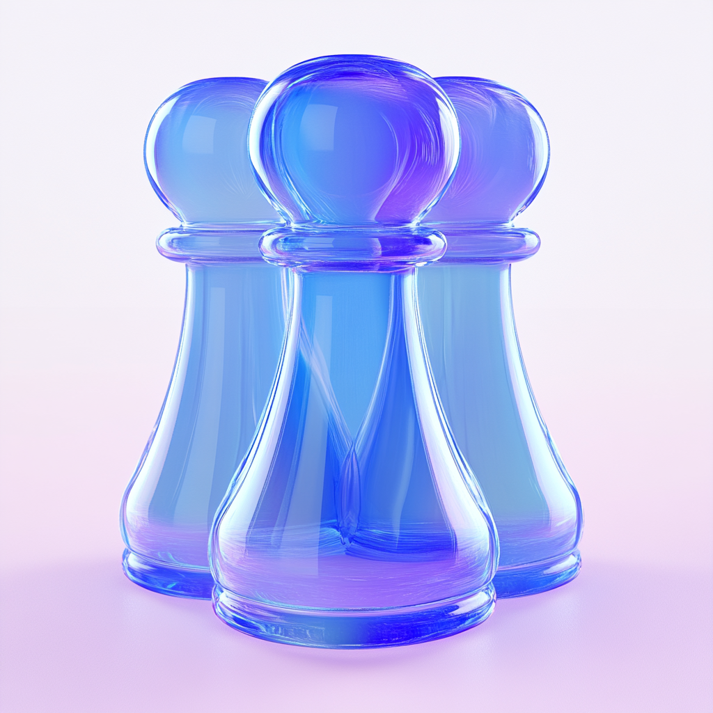 A visually striking 3D rendering of three glass chess pieces featuring a gradient of blue hues, ideal for artistic displays or design inspiration.