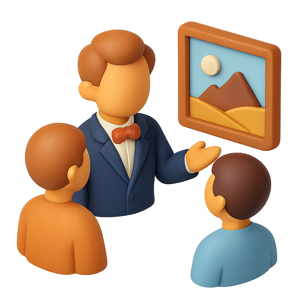 3D Art Dealer Icon with Clients in Isometric Style
