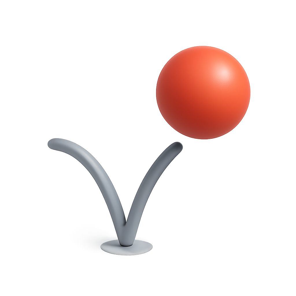 A visually striking 3D icon depicting a red spherical object bouncing above a sleek gray base. The icon features a glossy finish and a three-quarter view, set against a smooth gradient background.