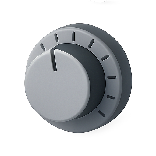 A detailed graphic of a control knob, designed for use in user interfaces or product mockups. The smooth finish and clear markings enhance its usability and aesthetic appeal.