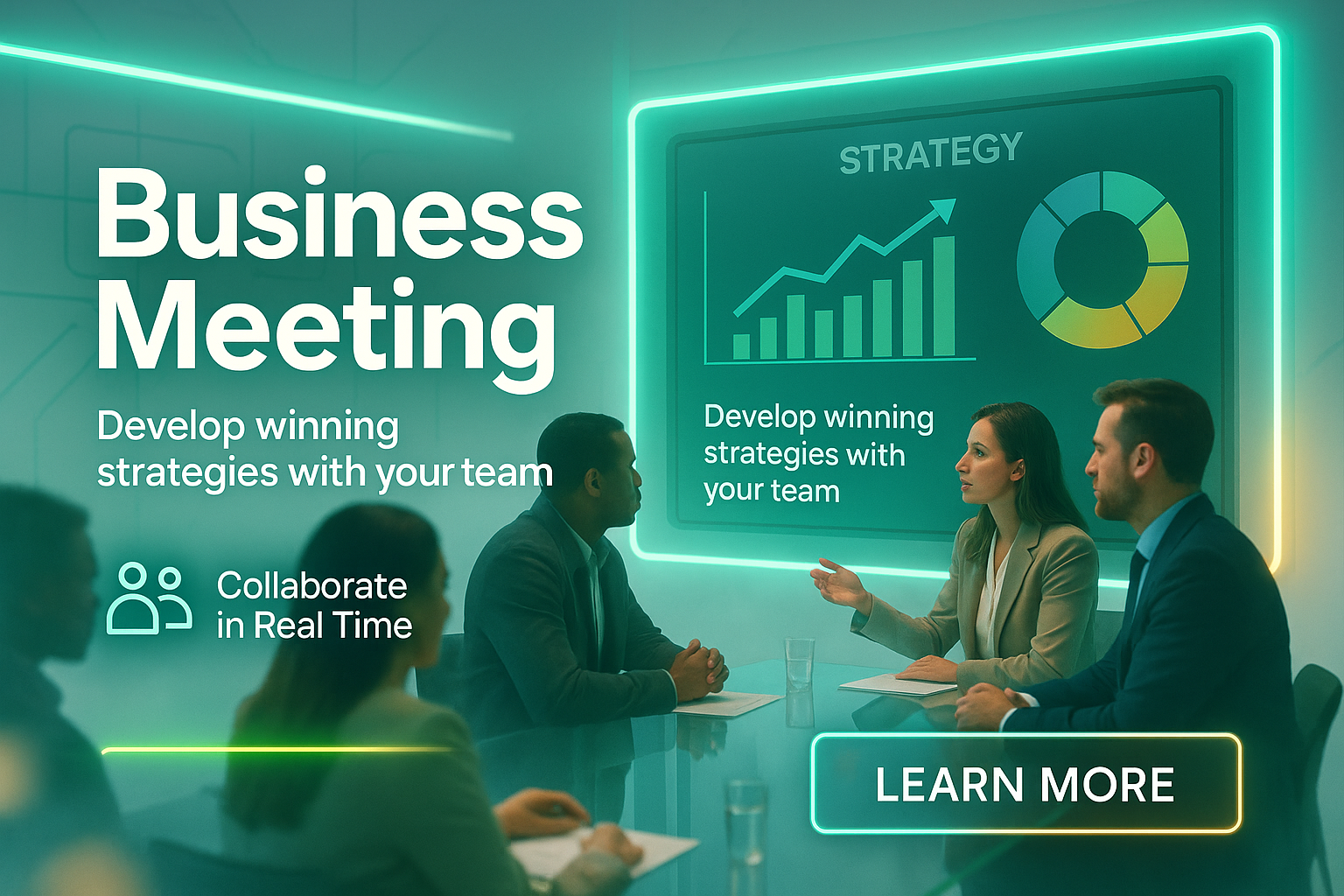 Futuristic Business Meeting Graphic with Strategic Analysis Theme