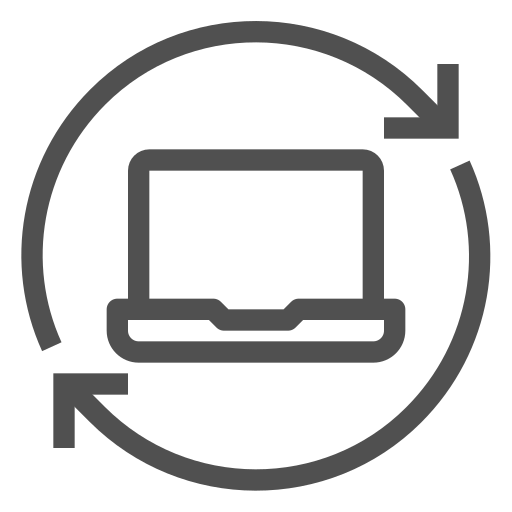 outline simple icon: arrows, connectivity, data exchange, laptop, network