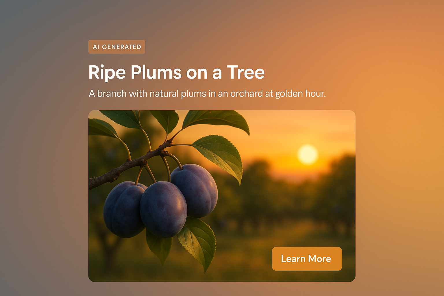 Ripe Plums at Sunset in Orchard Scene
