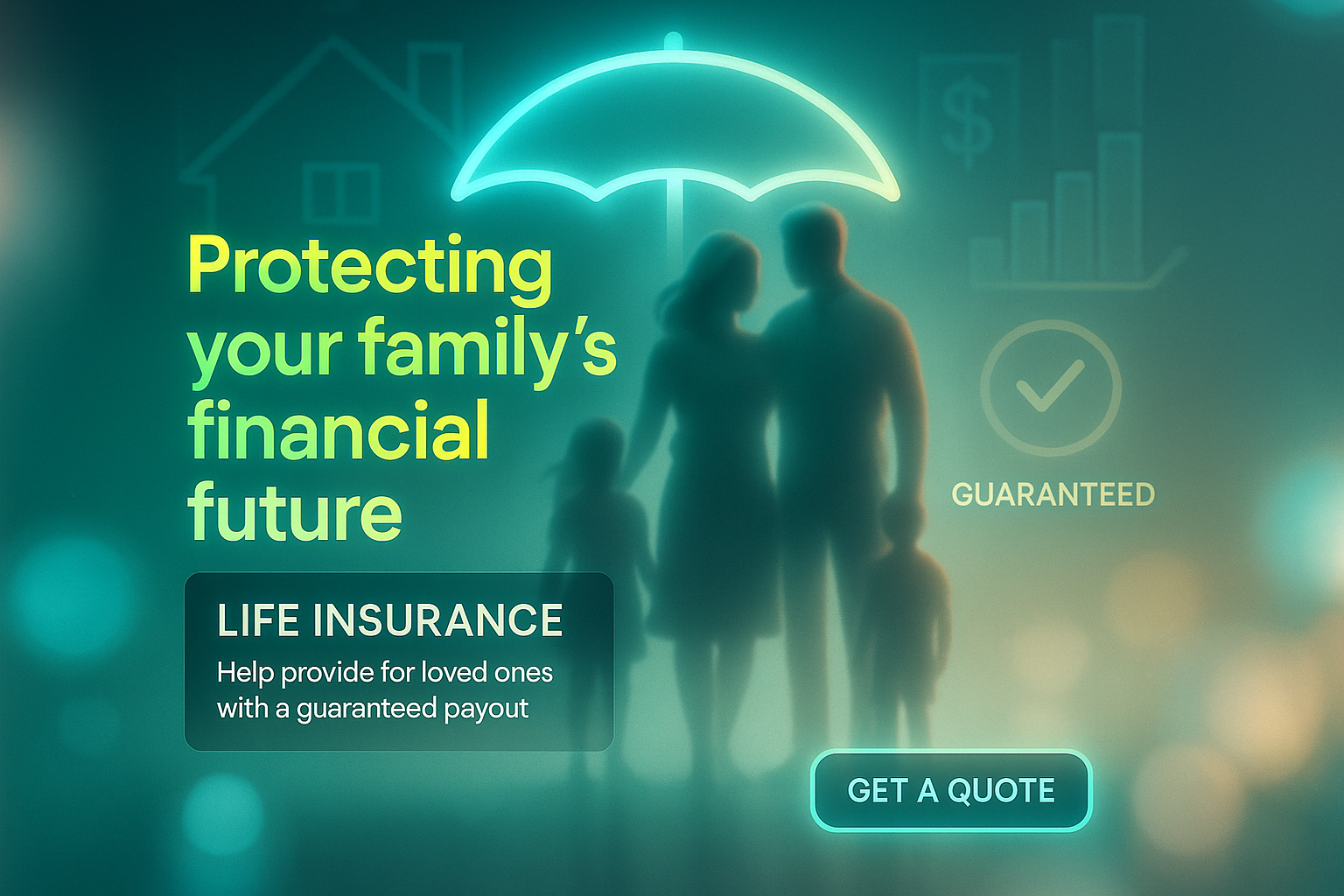 /Collection: /by davooda/Type: PNG/A visually engaging promotional graphic for life insurance featuring a family silhouette under an umbrella, symbolizing protection and security. Ideal for financial services marketing.