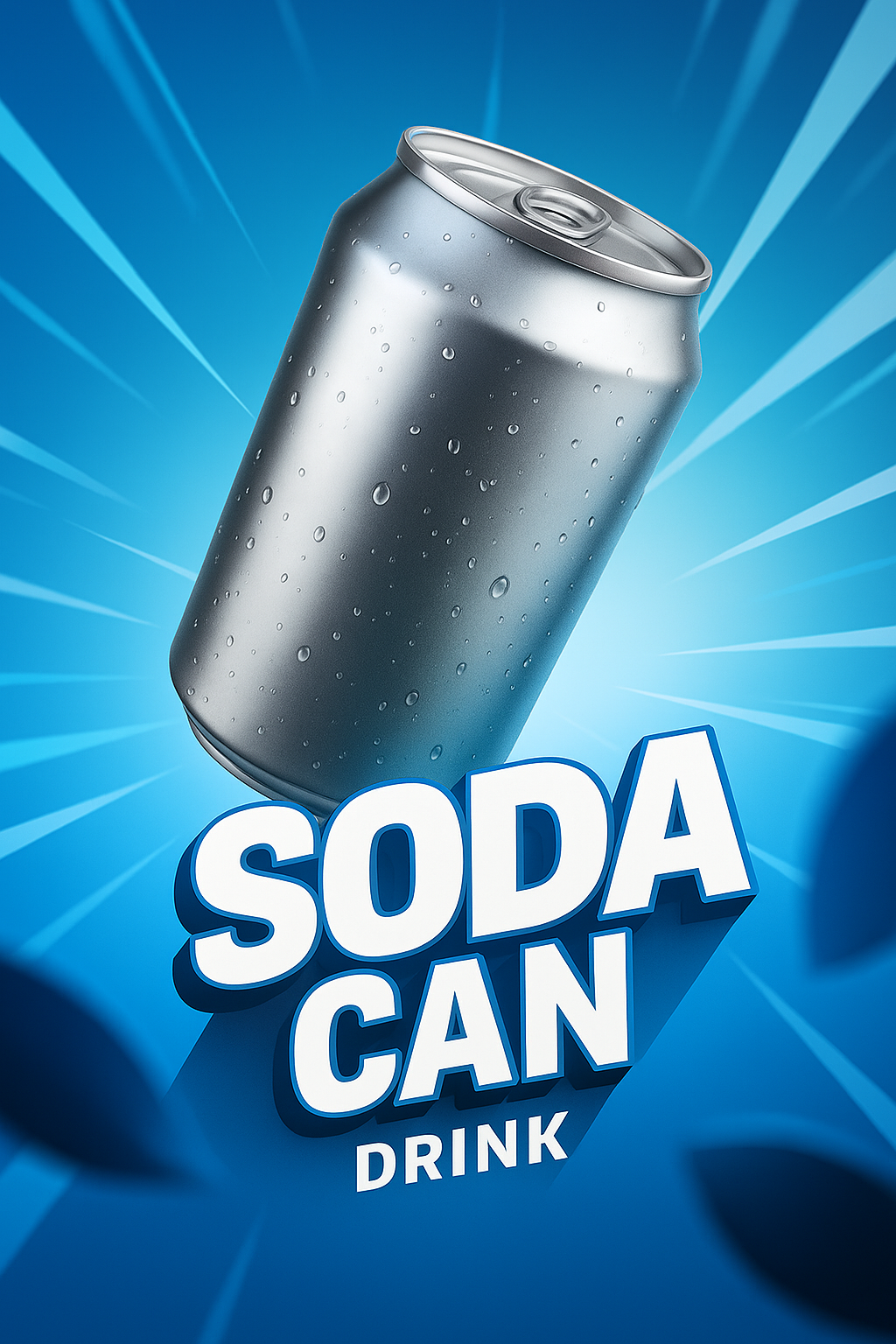 Dynamic 3D Soda Can Illustration with Engaging Design