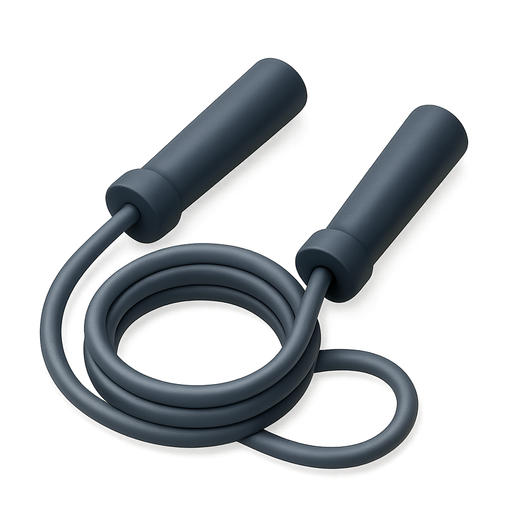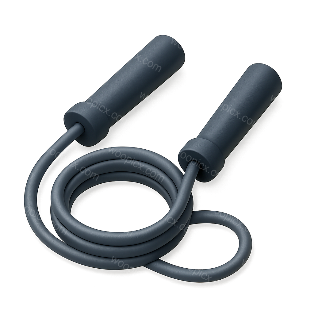 A sleek 3D representation of a jump rope featuring dark handles and a coiled rope. Perfect for fitness-related applications and iconography.