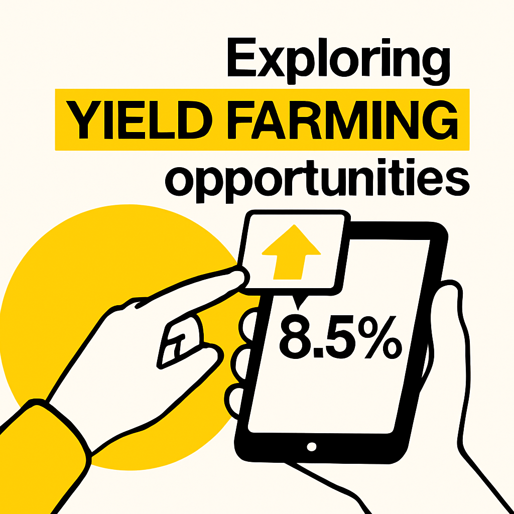 A modern graphic illustrating yield farming opportunities with engaging visuals suitable for financial or investment-related content. The design features bold typography and a clear call-to-action.