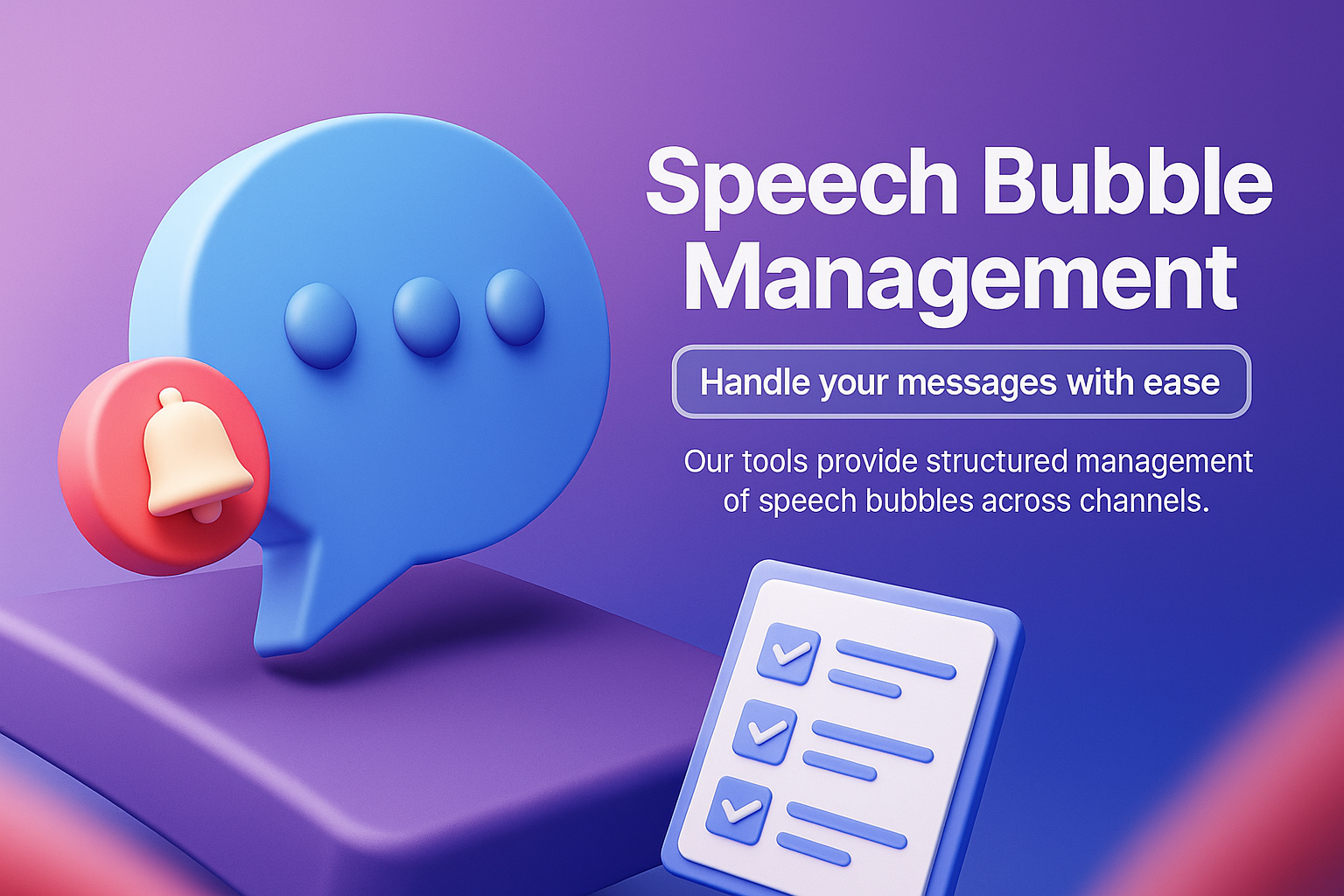 /Collection: /by davooda/Type: PNG/This image features a 3D mockup for website design, showcasing a speech bubble with a notification bell and a checklist. The design uses a smooth gradient background and emphasizes clear text hierarchy.