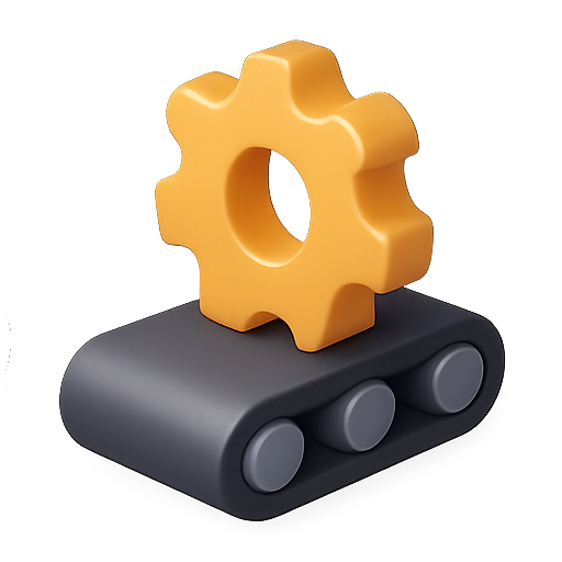 Stylized Gear Icon on a Conveyor Base