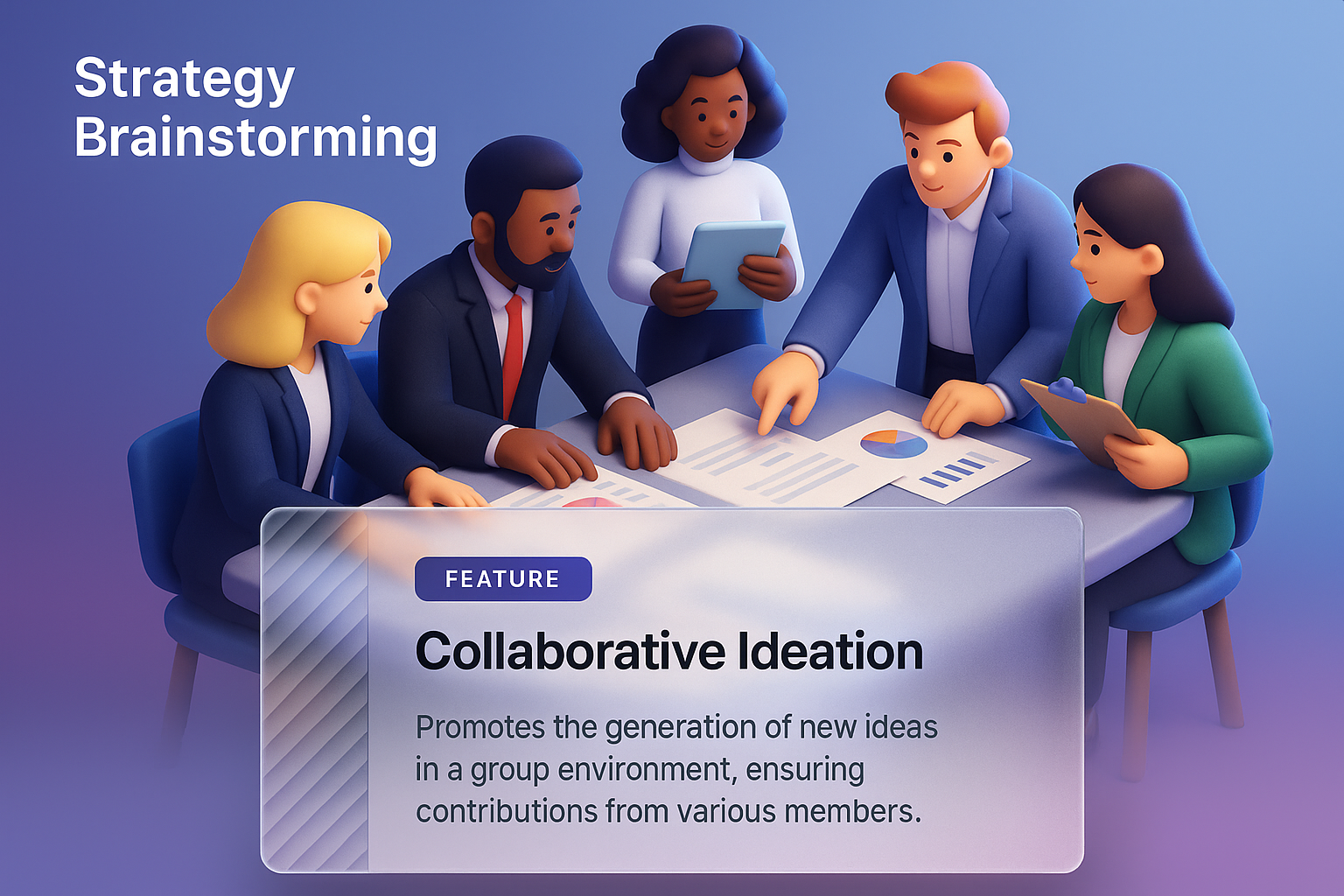 /Collection: /by davooda/Type: PNG/A group of diverse business professionals engaged in a brainstorming session, analyzing charts and documents. The setting features a modern design with a focus on collaborative ideation.