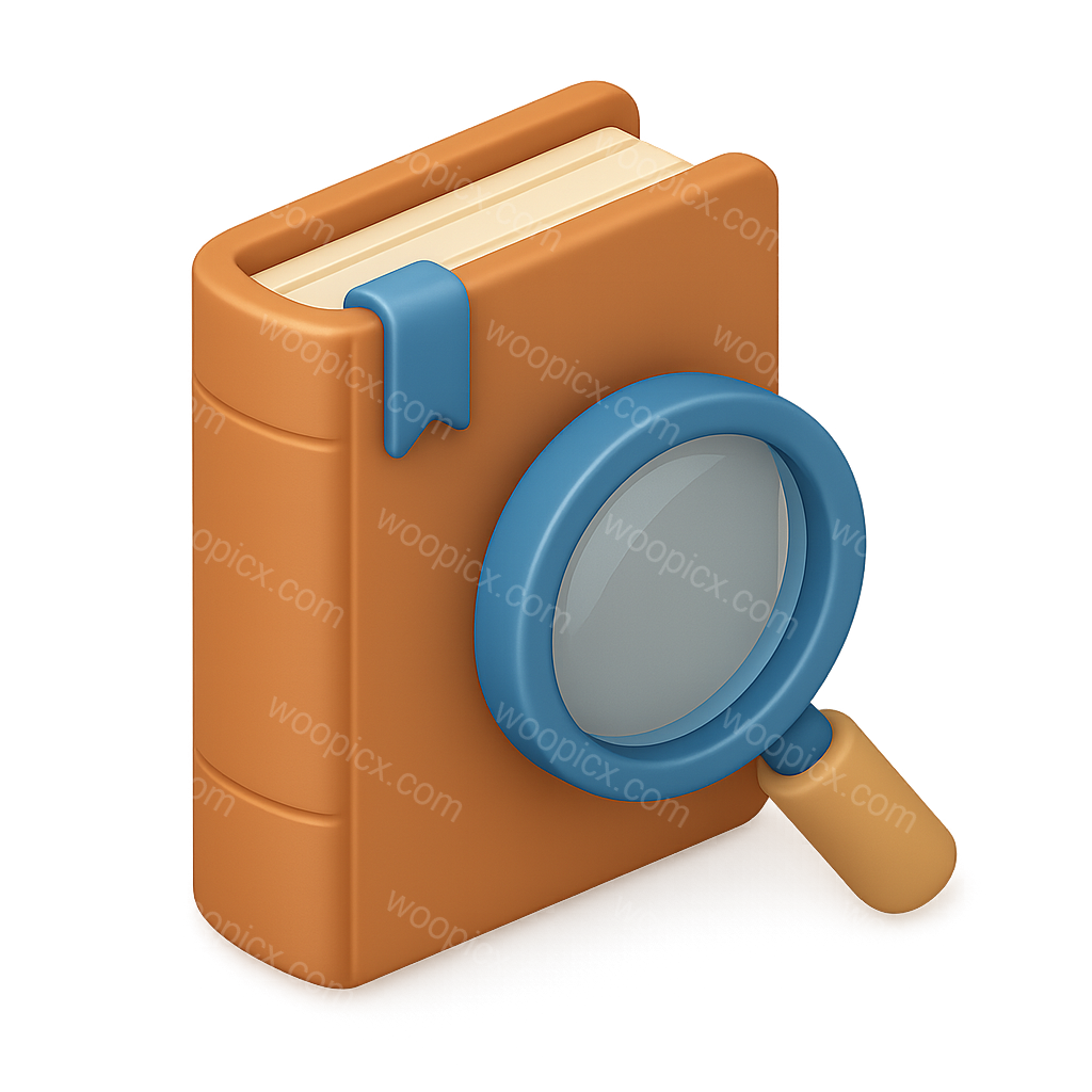 Stylish 3D Icon of an Open Book with Magnifying Glass
