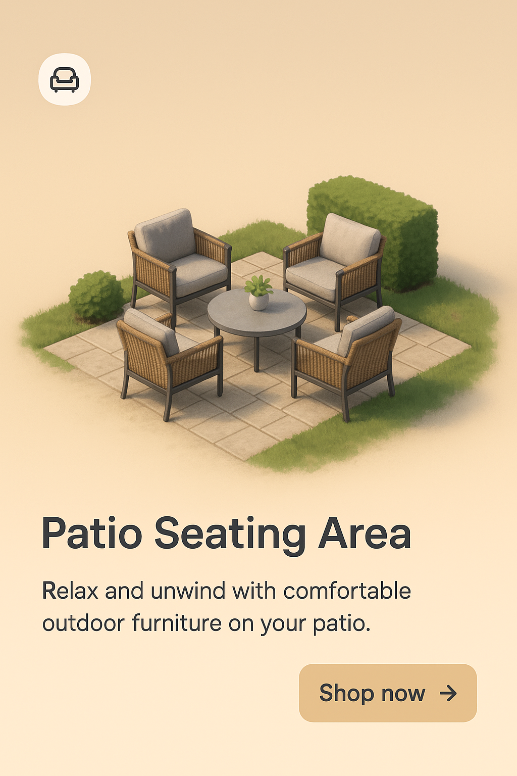 Stylish 3D Patio Seating Area with Cozy Furniture