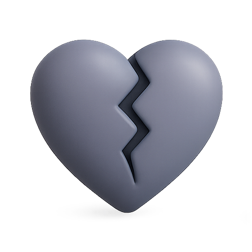 3D render of a broken heart icon, emphasizing themes of heartache and emotional distress. Suitable for digital communication and social media contexts.