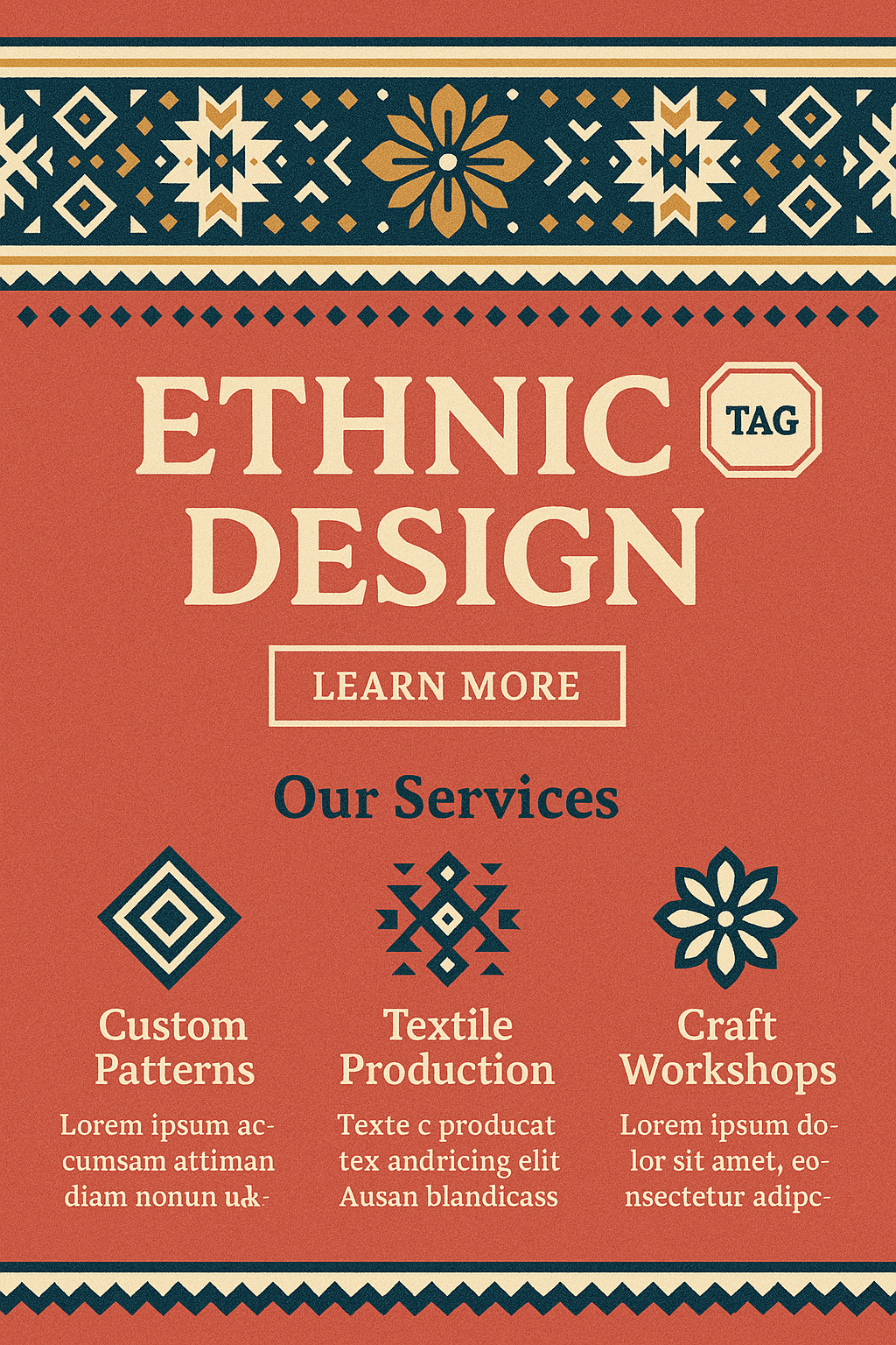 Promotional graphic showcasing services in ethnic design, featuring a decorative style and structured layout ideal for marketing purposes.