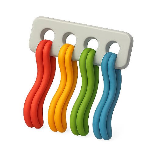 A playful and vibrant toy featuring four colorful curved strands attached to a white base. Ideal for children's playtime or educational purposes, encouraging fine motor skills and creativity.