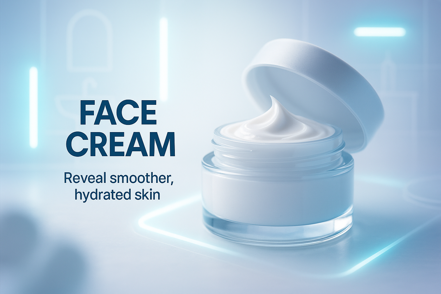 /Collection: /by davooda/Type: PNG/Stylish product mockup showcasing a face cream jar with a clean design, ideal for skincare marketing and e-commerce. The soft lighting enhances the product's appeal.
