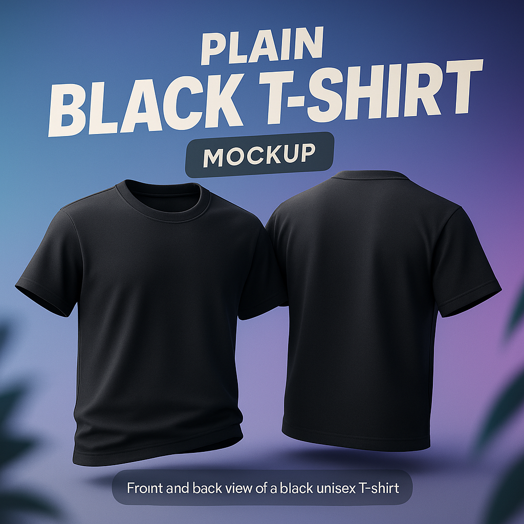 Realistic Mockup of a Plain Black T-Shirt Front and Back