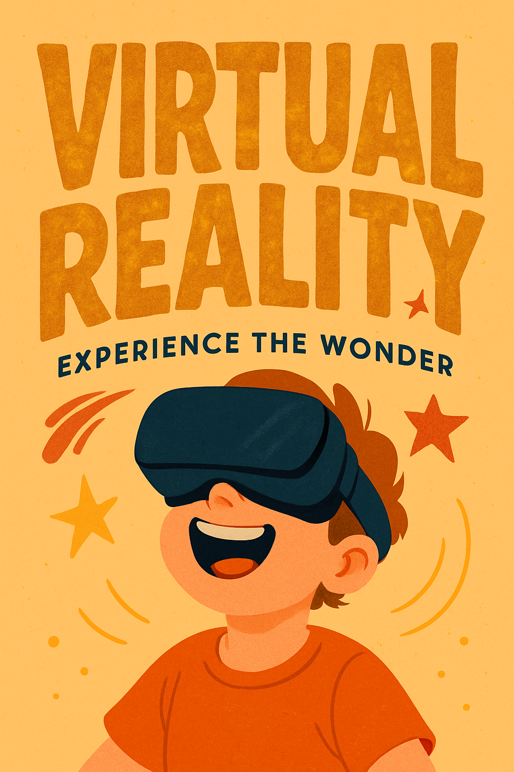 Vibrant illustration showcasing a child enjoying virtual reality, perfect for promoting VR experiences. The playful style captures excitement and wonder.