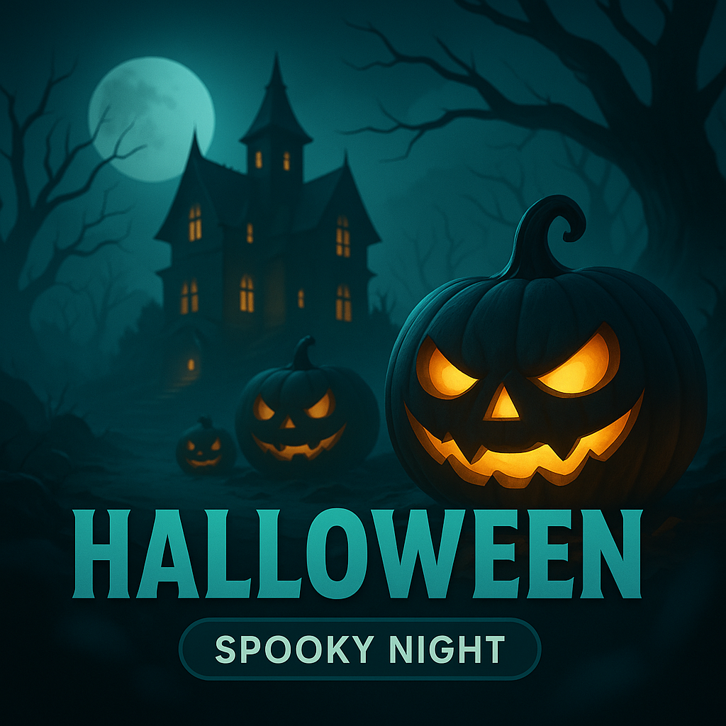 Halloween Themed Promotional Graphic Featuring Spooky Elements