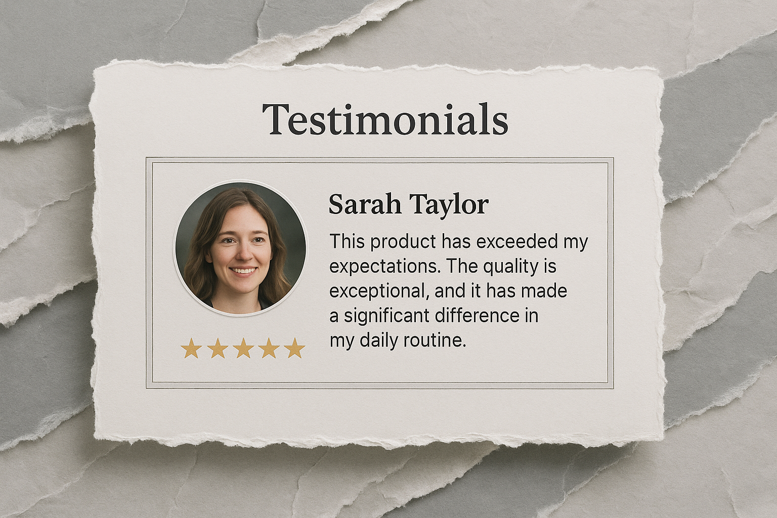 /Collection: /by davooda/Type: PNG/A visually appealing testimonials section featuring a circular photo of a user, their name, and a glowing testimonial. The background has a textured paper rip design, enhancing the overall aesthetic.