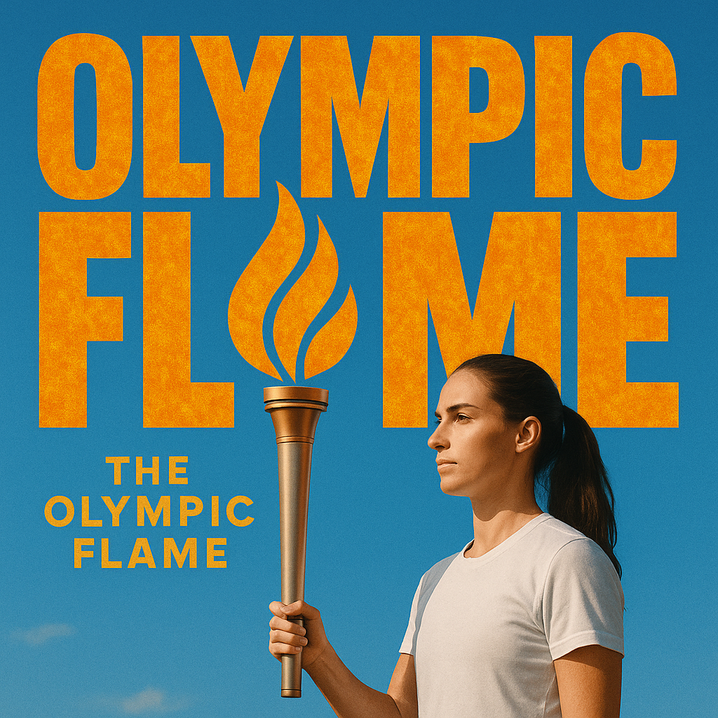 Vibrant promotional image featuring a torchbearer with the Olympic flame, designed to evoke excitement for the Olympic Games. Ideal for social media and event marketing.
