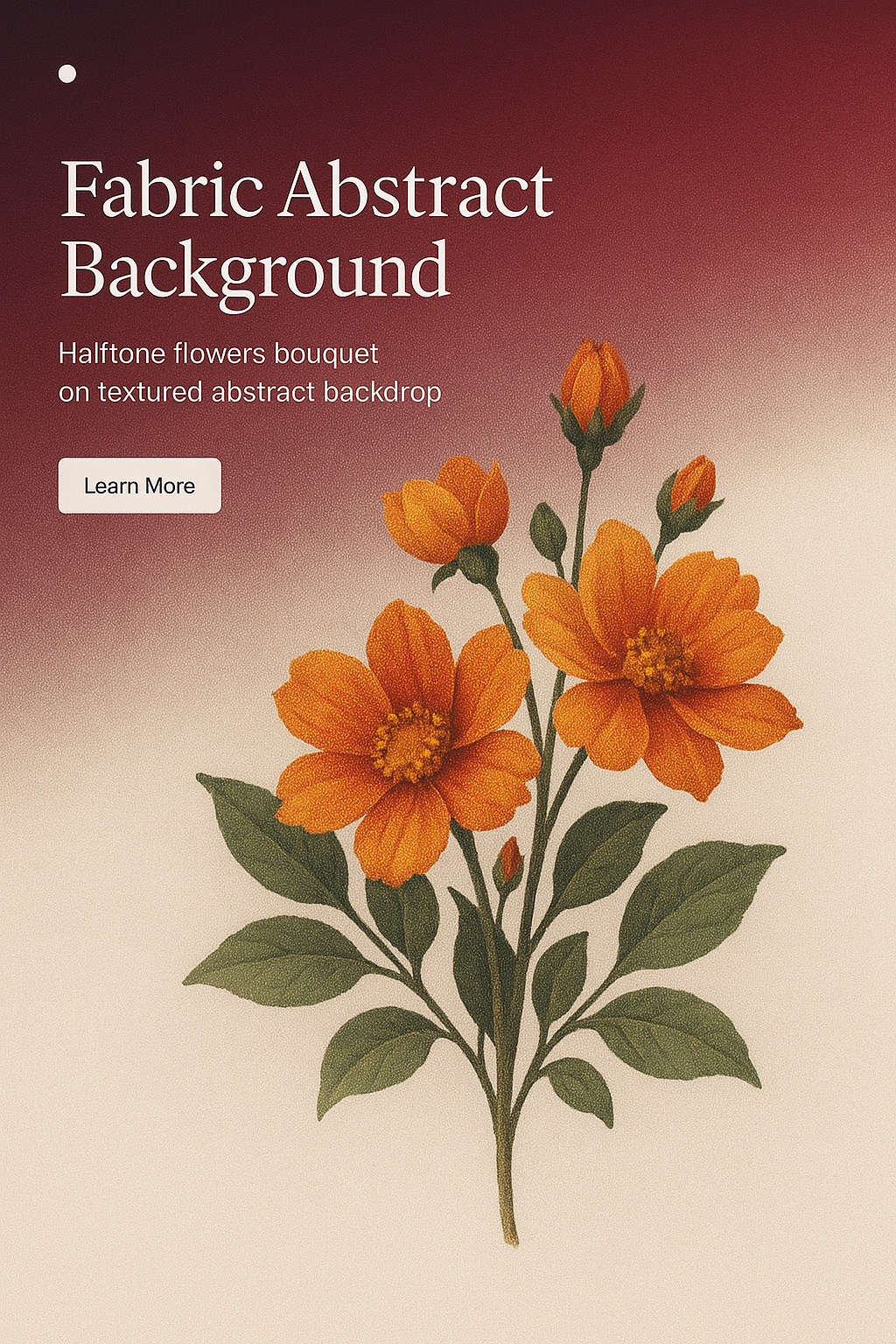 /Collection: /by davooda/Type: PNG/A beautifully designed abstract background featuring a halftone bouquet of vibrant orange flowers. The composition is set against a rich gradient backdrop, perfect for greeting cards and textile prints.