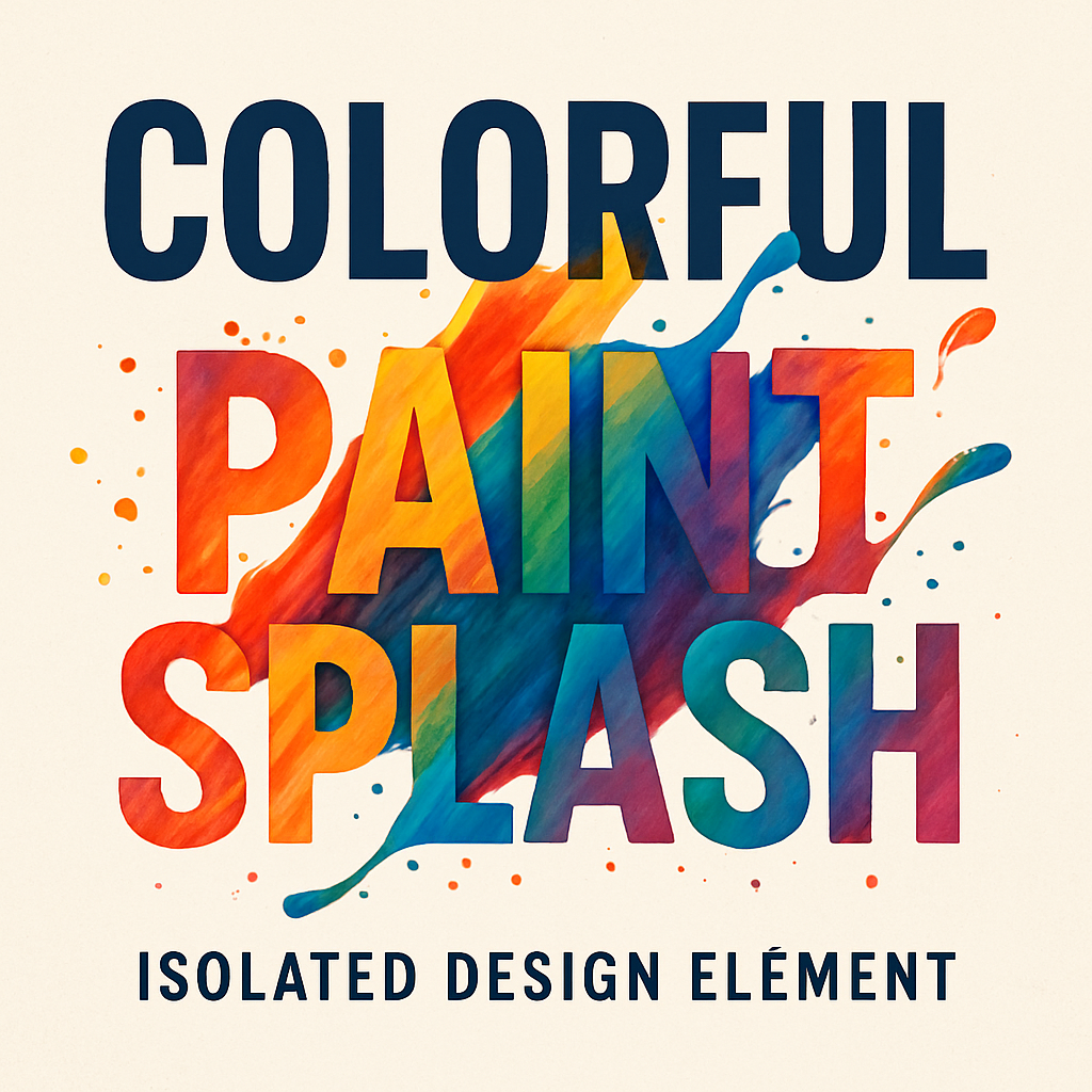 Dynamic graphic showcasing a colorful paint splash with bold typography, ideal for creative projects and artistic branding.