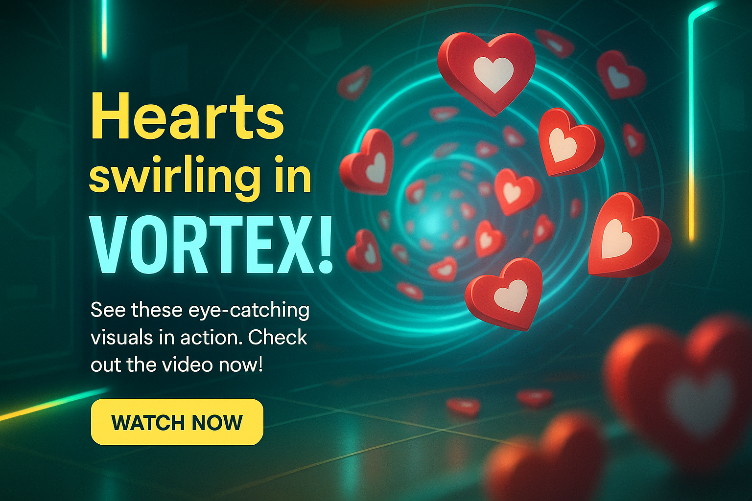 /Collection: /by davooda/Type: PNG/An engaging promotional graphic featuring swirling hearts in a vortex, designed to attract viewers to a video. The vibrant colors and 3D elements create a captivating visual experience.