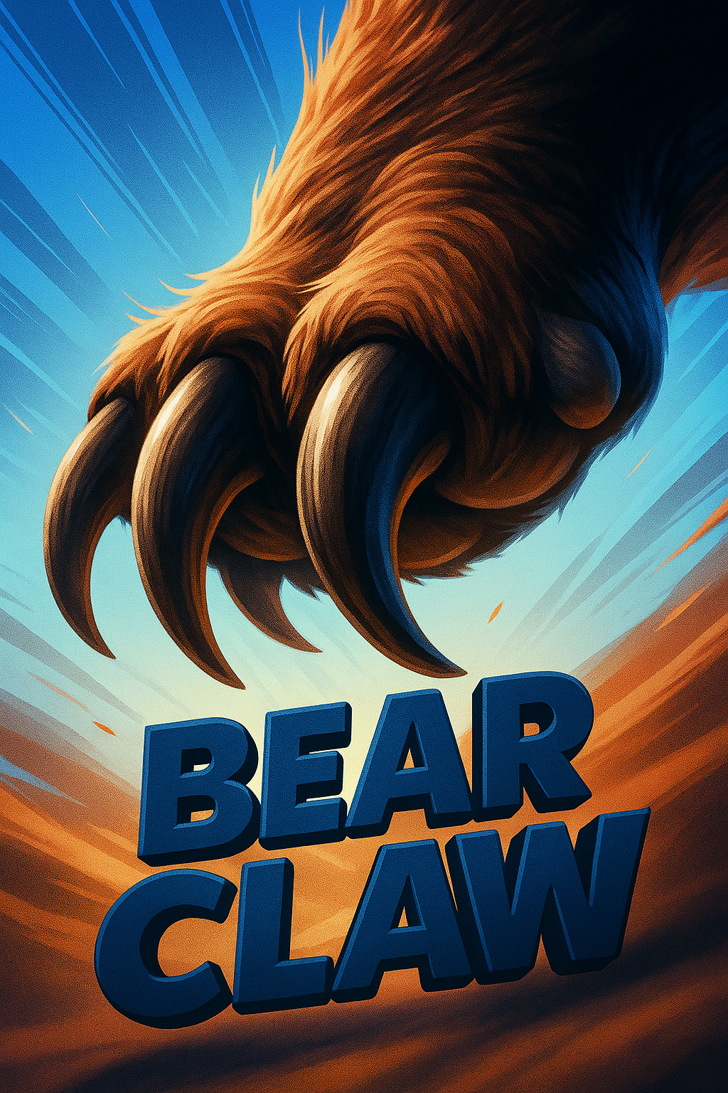 /Collection: /by davooda/Type: PNG/A vibrant illustration of a bear claw with dynamic lines radiating from the center, set against a smooth gradient background. The title 'BEAR CLAW' is prominently displayed in bold font, enhancing the energetic feel of the design.
