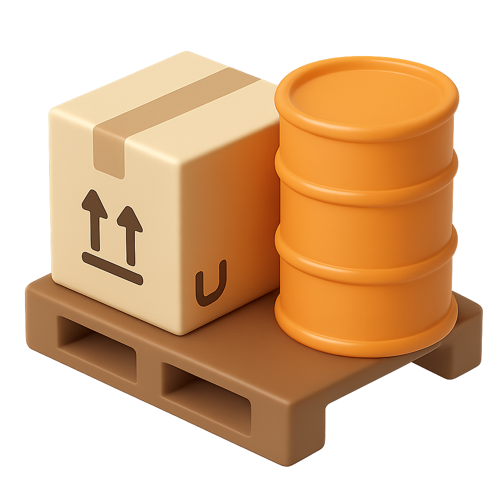 3D Isometric Icon of a Package and Barrel on a Pallet