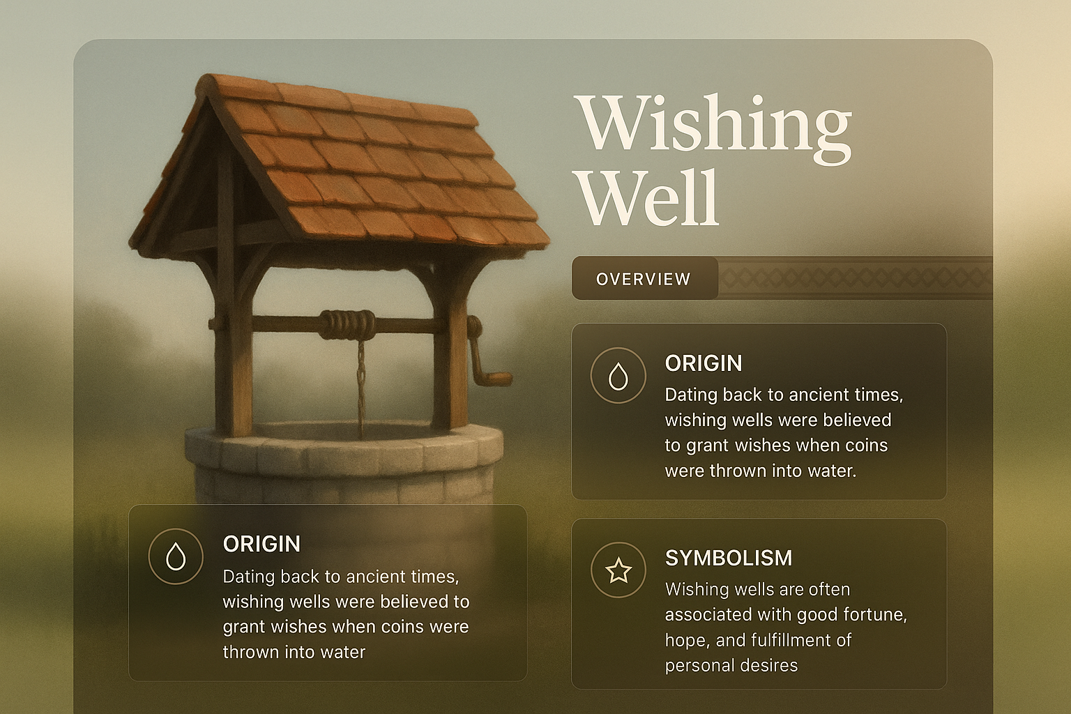 /Collection: /by davooda/Type: PNG/A visually appealing web design featuring a wishing well with a clean layout. The design includes informational blocks with headers and icons, integrated harmoniously with the image.