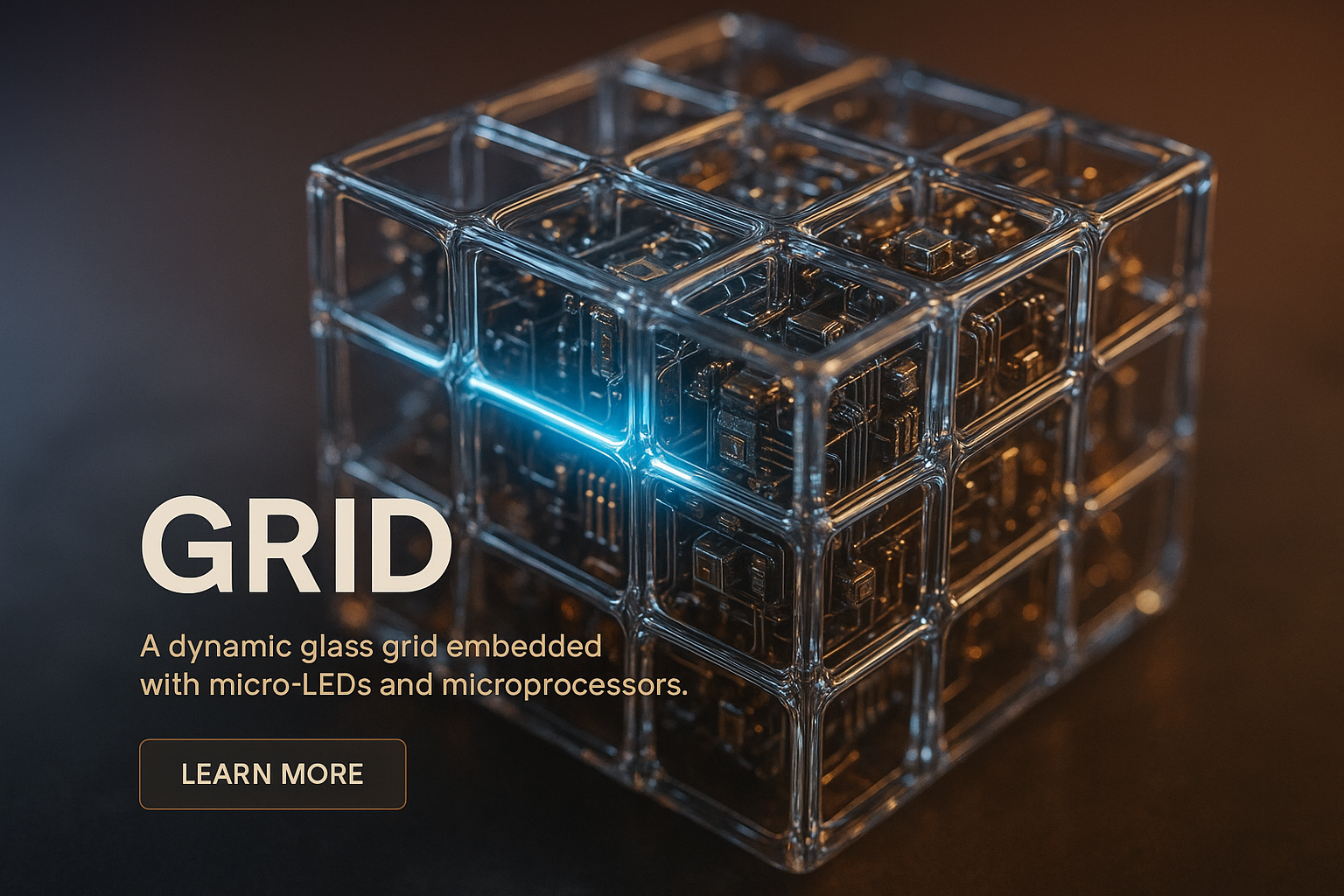Hyperrealistic 3D Glass Grid with Micro-LEDs and Circuit Boards