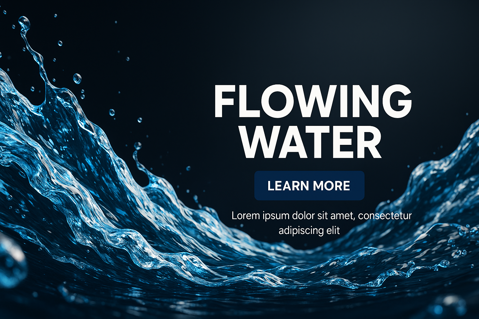 Visual representation of flowing water with a modern design, featuring bold text elements. Ideal for environmental campaigns or water-related services.