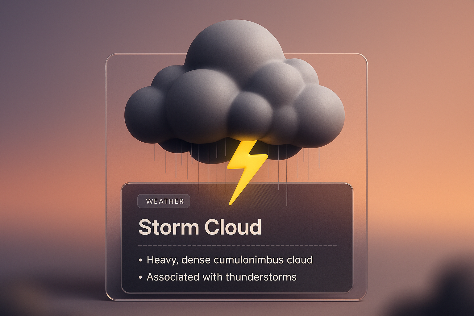 /Collection: /by davooda/Type: PNG/A visually striking 3D illustration of a storm cloud, featuring a lightning bolt and a transparent label with weather details. The background showcases a smooth gradient, enhancing the overall design.