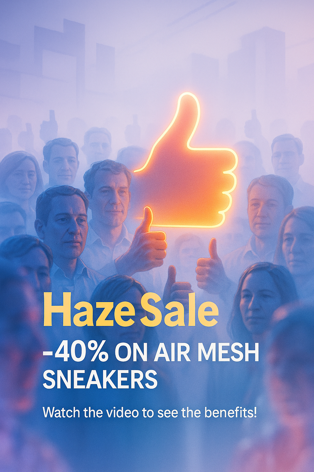 /Collection: /by davooda/Type: PNG/Vibrant promotional graphic featuring a thumbs-up symbol and a discount offer, designed for marketing air mesh sneakers, ideal for social media or ad campaigns.