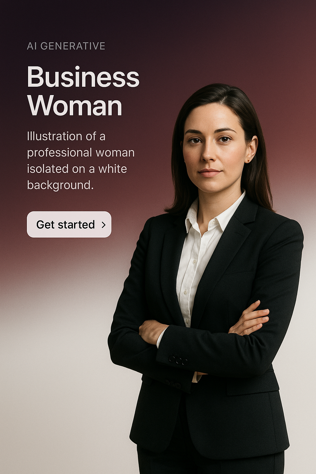 /Collection: /by davooda/Type: PNG/A professional woman in a business suit stands confidently against a gradient background. Accompanied by a clean call-to-action button, this illustration is ideal for web design.