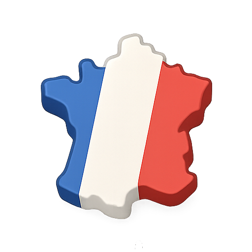 Stylized 3D representation of France shaped in the national colors. Ideal for educational materials, travel blogs, or promotional content related to France.