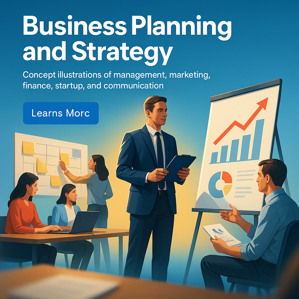 /Collection: /by davooda/Type: PNG/This image showcases a dynamic office scene featuring diverse professionals engaged in business planning activities. Illustrations highlight management, marketing, finance, and communication.
