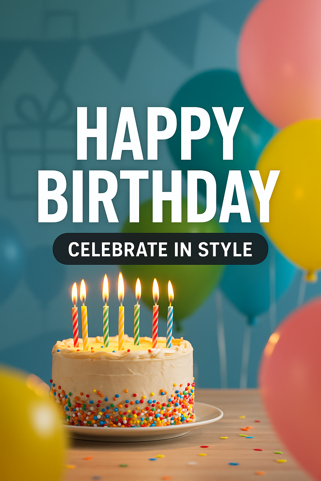 Festive Birthday Celebration Graphic Featuring Cake and Candles