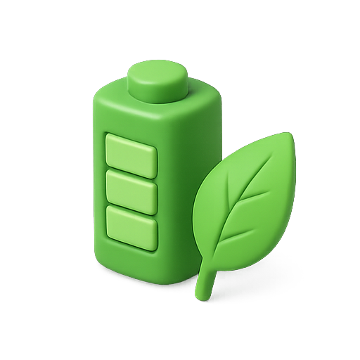 Stylized battery icon paired with a leaf, symbolizing eco-friendliness and sustainability. Perfect for environmental campaigns or green technology branding.