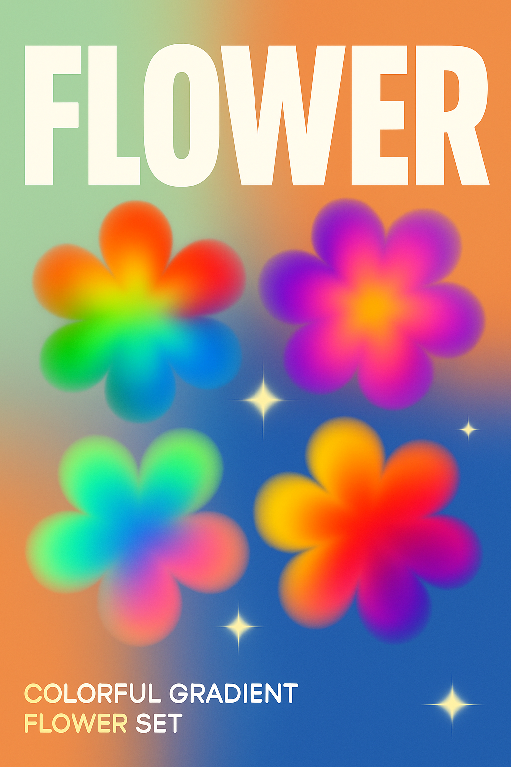 /Collection: /by davooda/Type: PNG/A vibrant collection of gradient flowers with a smooth blurred effect, set against a colorful background. The design features bold typography and a stylish, modern layout.