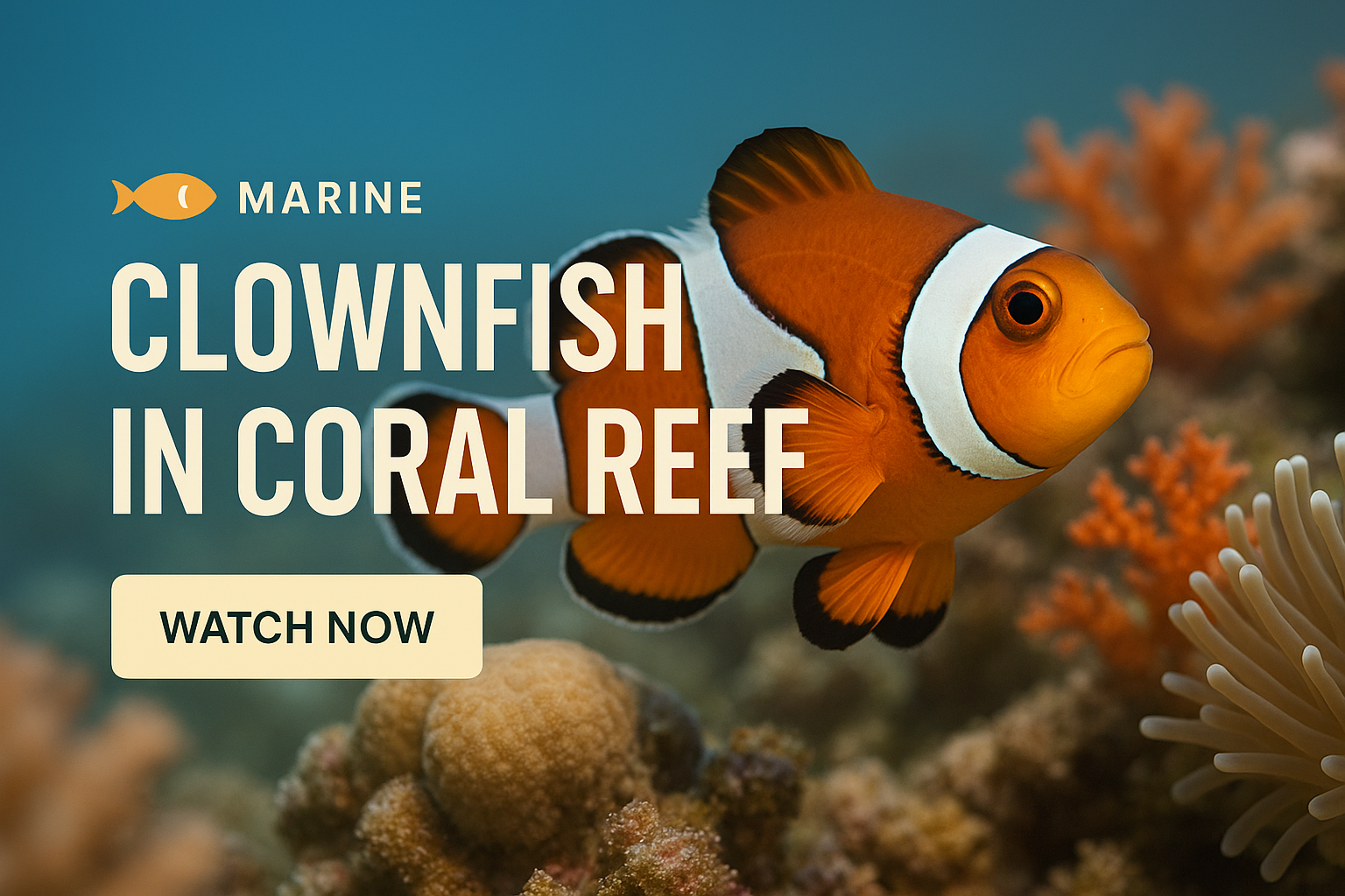 /Collection: /by davooda/Type: PNG/Vibrant underwater image showcasing a clownfish swimming among colorful coral, designed for marine life awareness or educational content. Perfect for digital platforms.