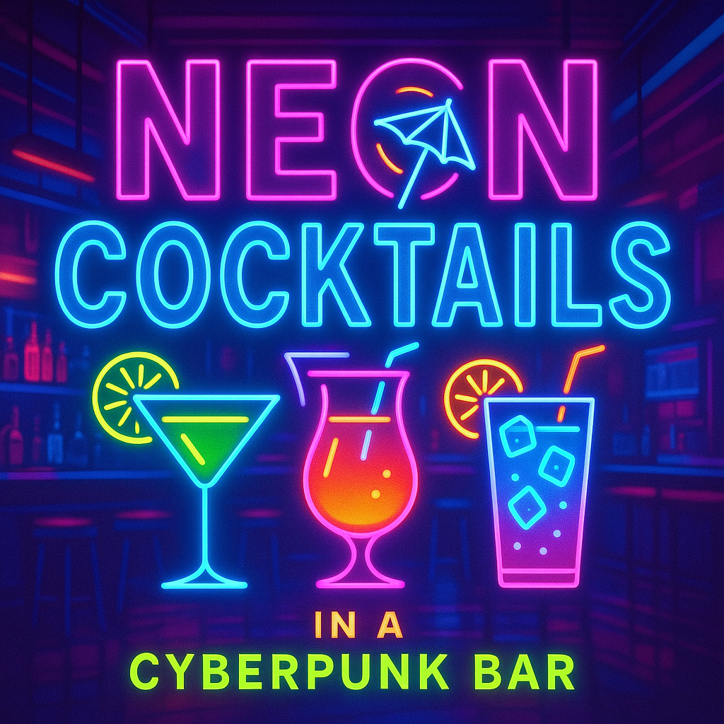 Vibrant Neon Cocktails Graphic for Cyberpunk Theme