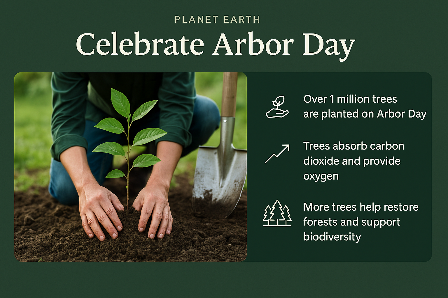 Arbor Day Awareness Graphic Featuring Tree Planting