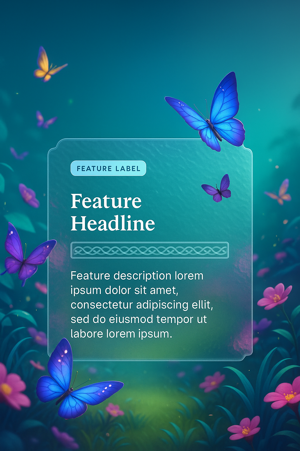 /Collection: /by davooda/Type: PNG/A beautiful fantasy forest scene filled with vibrant butterflies and colorful flowers. The design features a translucent text block, enhancing the magical atmosphere.