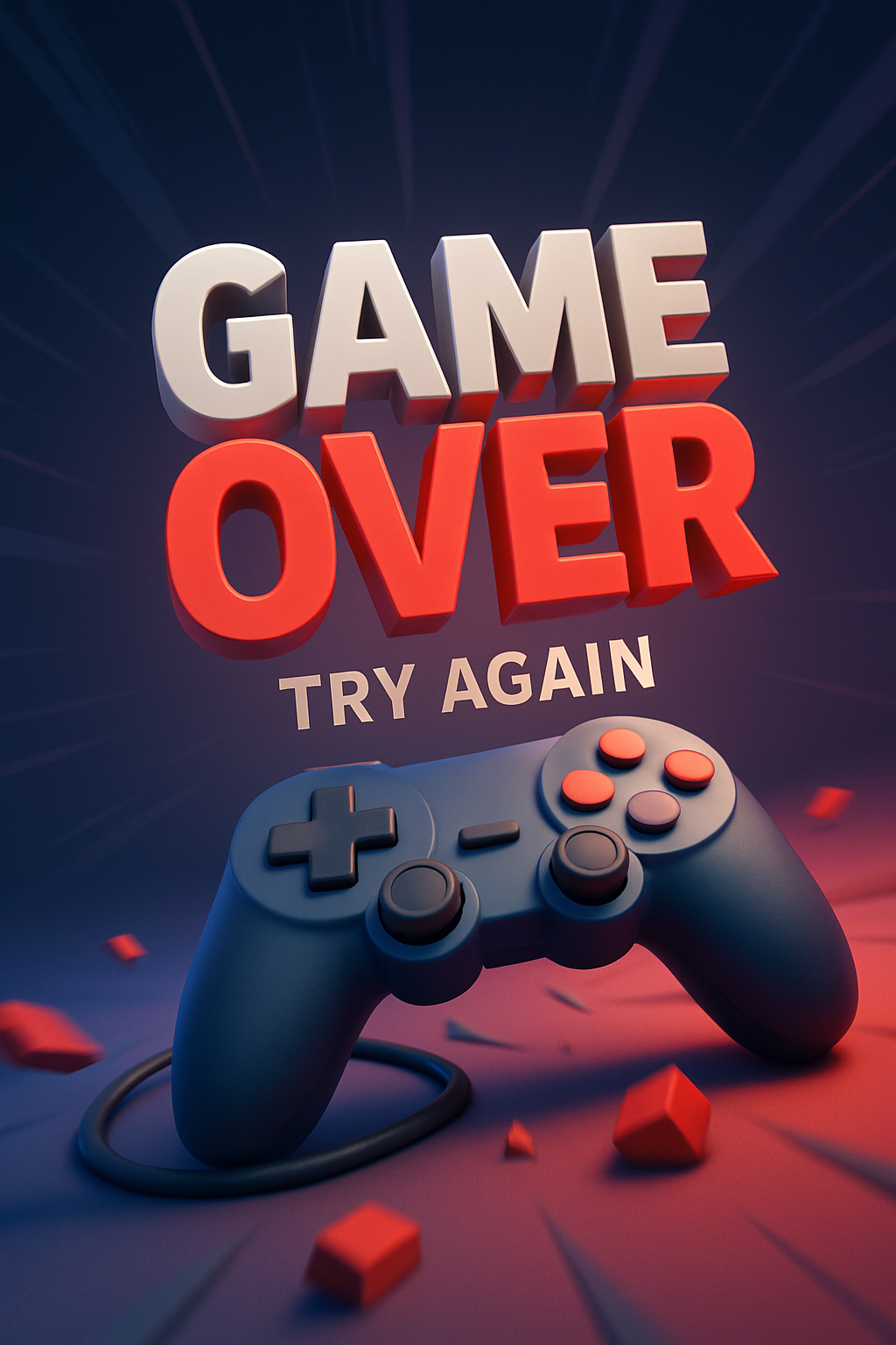 A vibrant 3D graphic featuring a game controller and the text 'Game Over'. This image is designed for gaming-related content, appealing to gamers and content creators.