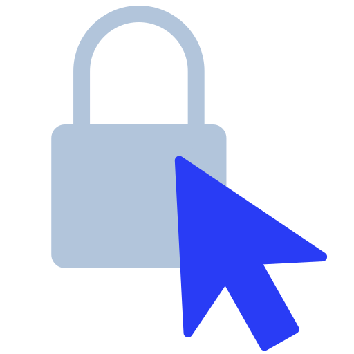polish-blue simple icon: lock, security, protection, privacy, mouse pointer