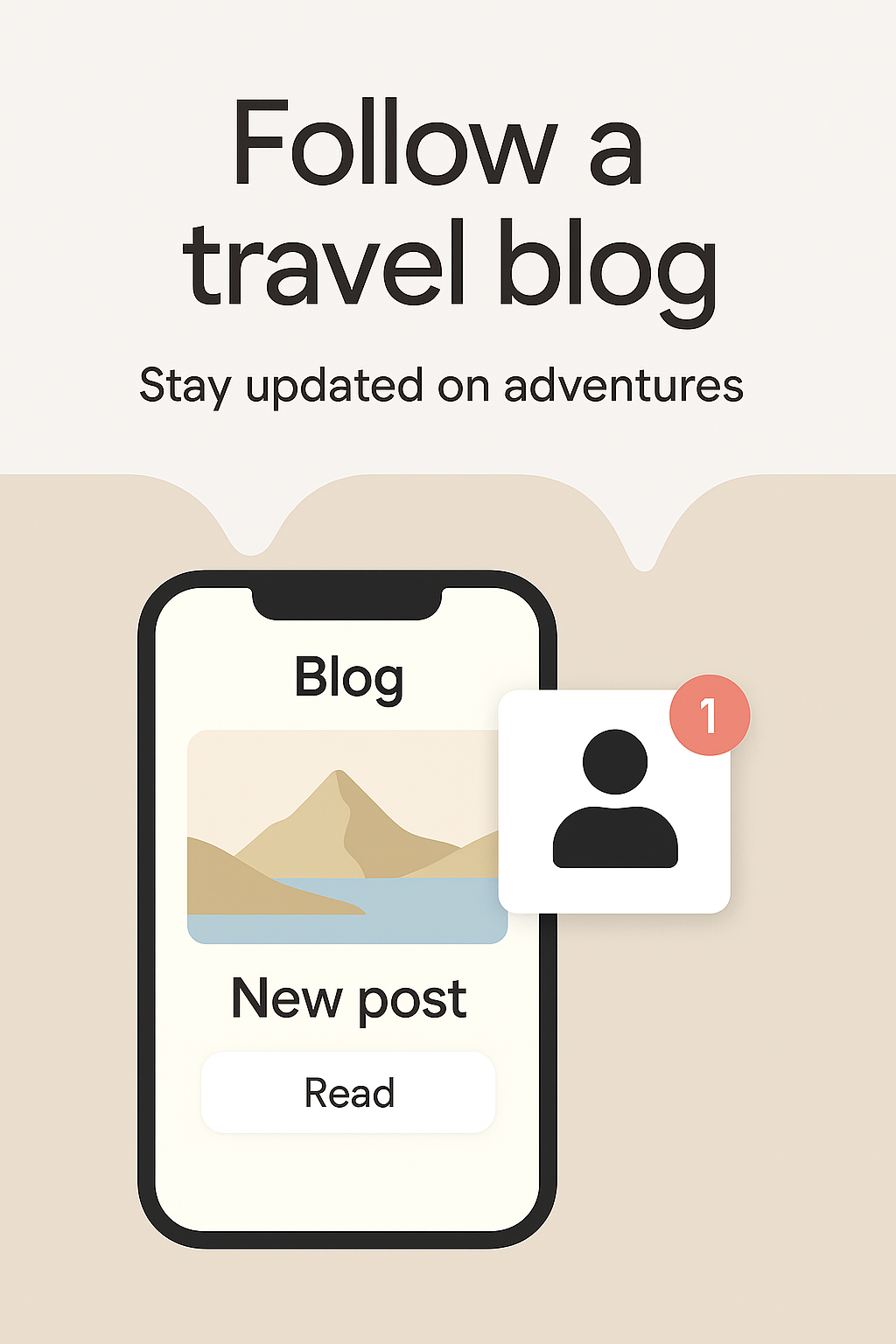 A sleek mobile app mockup showcasing a travel blog interface with notification elements, perfect for demonstrating app features in digital marketing.