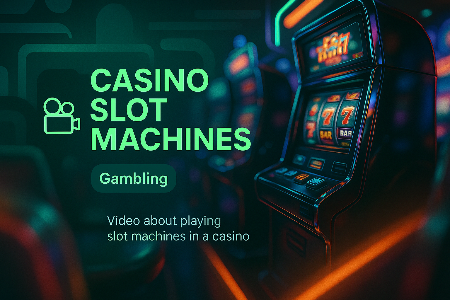 A visually engaging graphic showcasing casino slot machines with neon lighting, ideal for promotional content related to gambling and gaming videos.