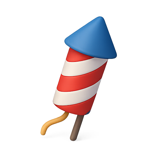 A vibrant 3D illustration of a firework rocket with a blue cone top and red and white stripes, ideal for festive or celebratory themes.